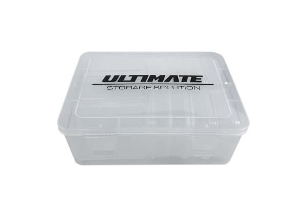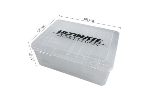 Pevný, odolný, průsvitný box o rozměrech 165x120x60 mm obsahuje 3 vnitřní boxy o rozměrech 75x50x35 mm a 8 boxů o rozměrech 55x55x20 mm se samostatným zaklapávacím víkem pro rychlé a snadné uložení dílů.