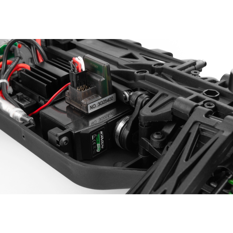Model je vybaven spolehlivým 6kg servem a 40A regulátorem, které zajišťují kontrolu nad řízením za všech okolností.