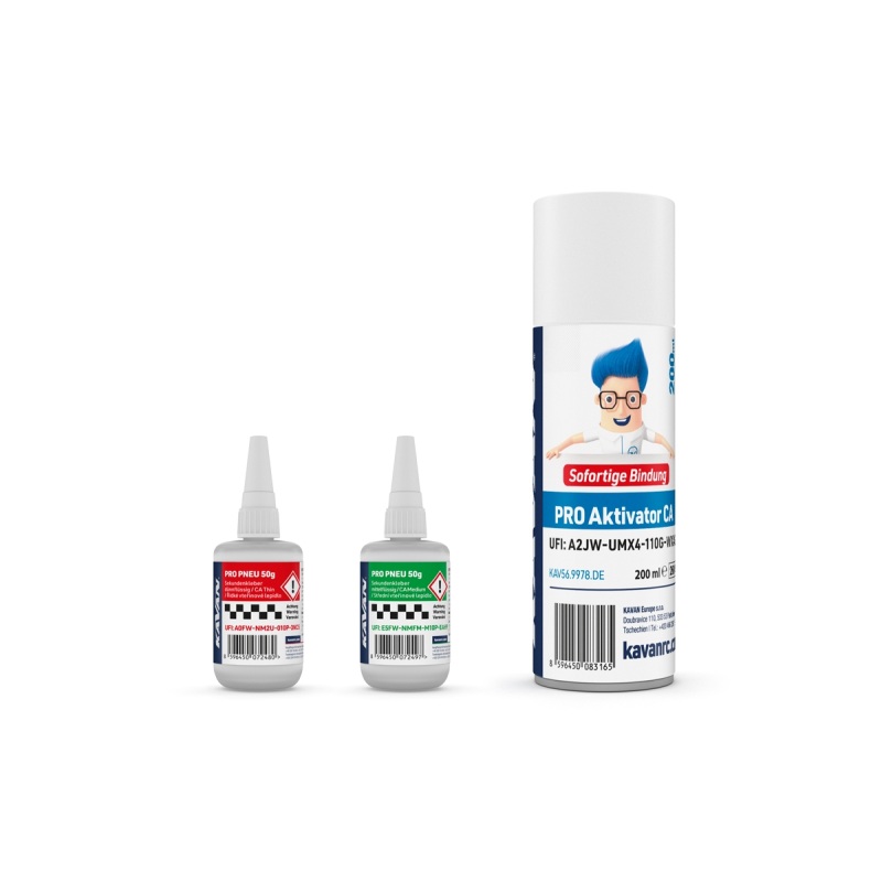 KAVAN PRO PNEU střední a řidké vteřinové lepidlo 50g + Kavan PRO aktivátor CA 200ml