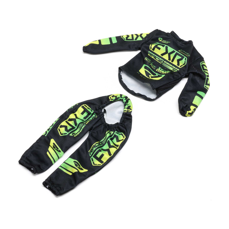 Náhradní díl pro RC model motorky Losi 1:4 Promoto SM: oblečení jezdce FXR černá Podium Gladiator.