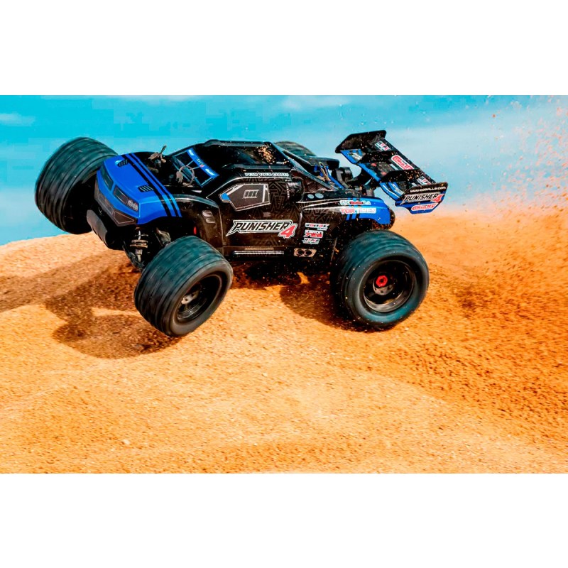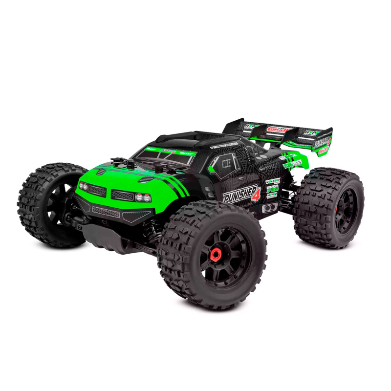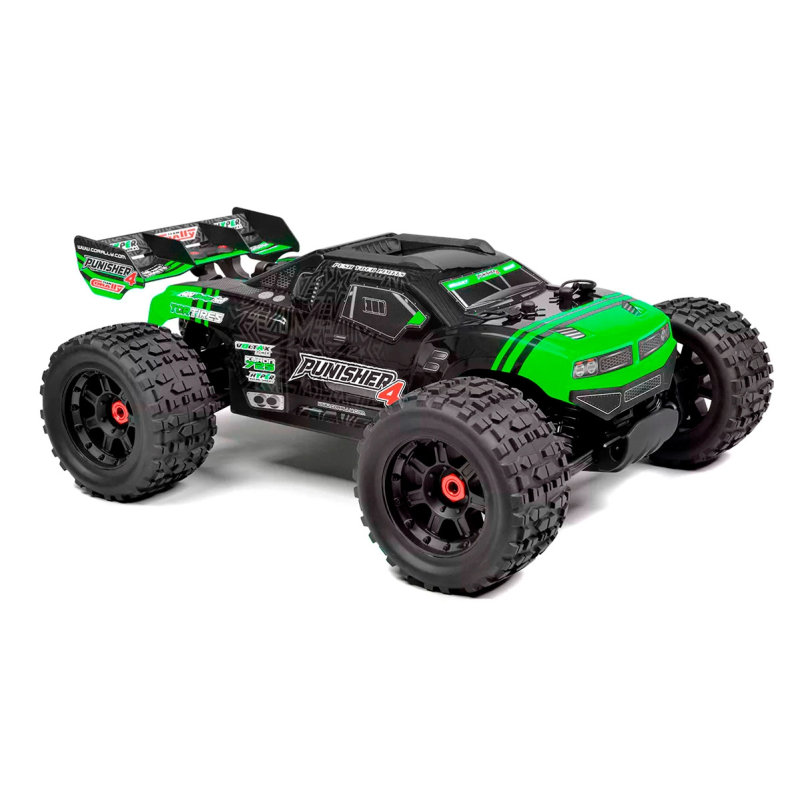Punisher4, RC monster truck XL4S, je navržen pro začátečníky i zkušené bashery. Je postaven na stejném podvozku jako model Syncro4 a přináší inovativní funkce za bezkonkurenční cenu. Nové velkoobjemové kompozitové tlumiče, extrémně odolné kompozitové parohy tlumičů a zesílený systém výztuh podvozku jsou příkladem dokonalé kombinace odolnosti a výkonu. Díky výraznému hliníkovému podvozku v titanové barvě, ochranným deskám, novému wheelie kolečku a aerodynamickému křídlu Punisher4 nově definuje off-road styl.