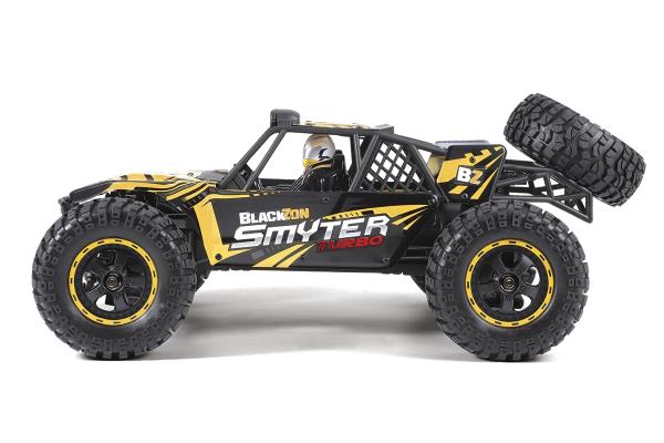 Verze Turbo navíc oproti základnímu Smyteru obsahuje střídavý motor velikosti 390, se kterým model stiskem plynu doslova vyletí vpřed. Aby ho mohl řídit úplně každý, je na jeho vysílači umístěn volič rychlosti, kterým lze nastavit pomalejší tempo pro potřeby začátečníků. Dostanete zde navíc silnější 7.4V 1600mAh LiPo akumulátor, který lze nabíjet přibaleným USB nabíječem pro pohodlnější obsluhu. Dokoupit je možné i extra silný akumulátor 3S 11.1V 1800mAh a 3S USB nabíječ! Celý set je navíc zabalen jako RTR (Ready To Ride), tudíž stačí pouze zapojit akumulátor, vložit do vysílače baterie, a vyrazit do terénu!