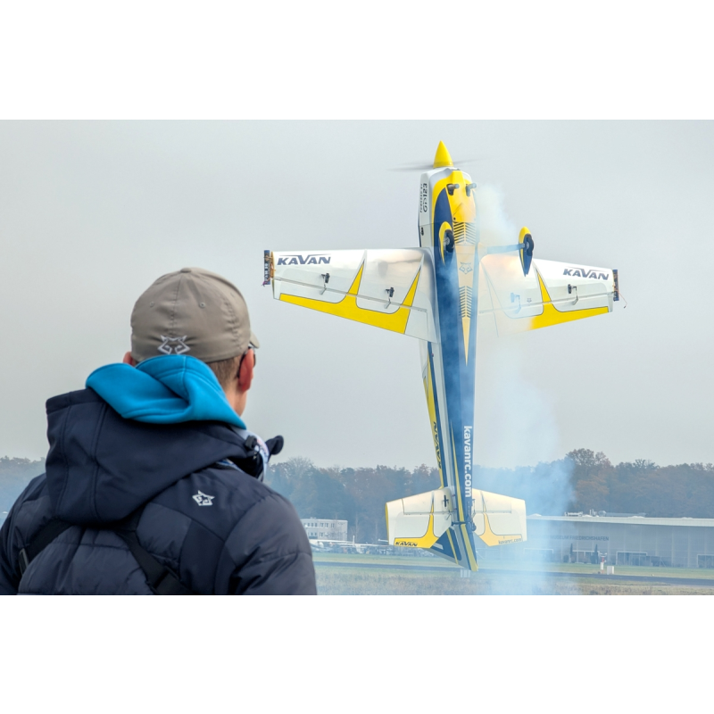 Pro ovládání modelu vyhoví nejméně devítikanálová počítačová RC souprava – možnost přesného nastavení „párových“ serv a naprogramování dvojích a exponenciálních výchylek ve správné velikosti je pro létání akrobacie – klasické přesné i extrémní 3D – zásadní.