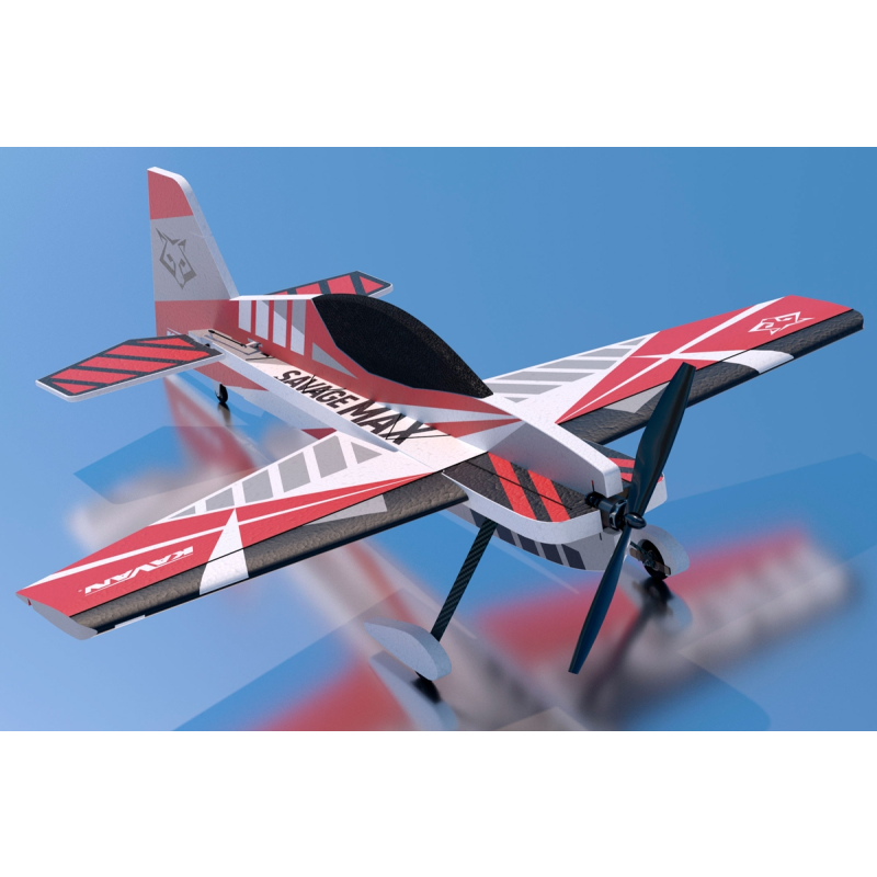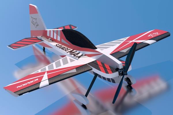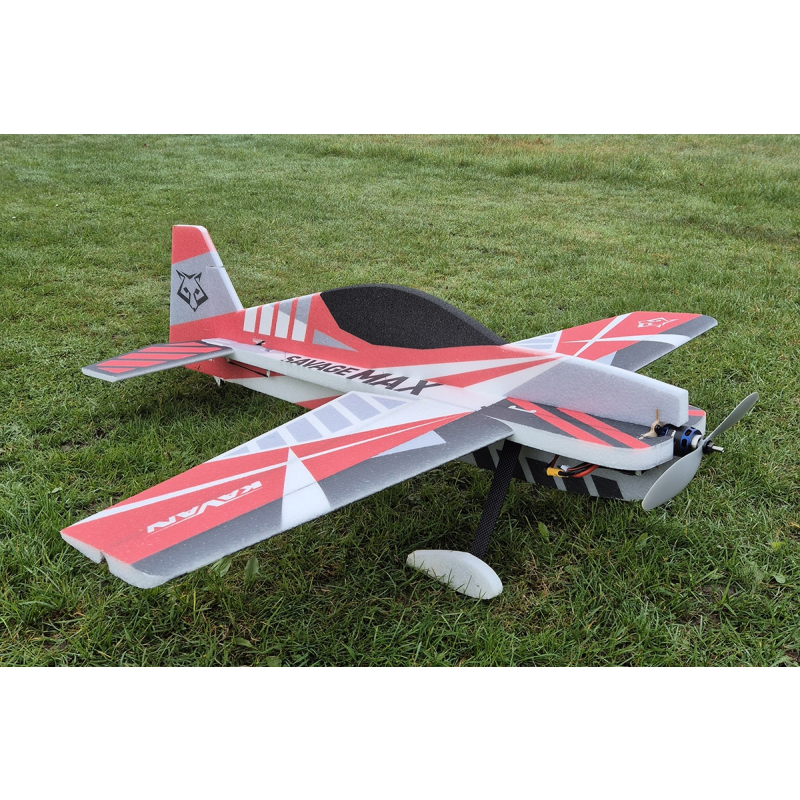 SAVAGE MAX je vysokovýkonný 3D akrobatický speciál kategorie park-fly z pěnového EPP určený pro pohon střídavými elektromotory o výkonu 350-500 W. Pár hodin s vteřinovým lepidlem v ruce stačí pro dokončení tohoto modelu schopného létat obraty klasické F3A sestavy, stejně jako viset na vrtuli a provádět všechny ostatní 3D kousky! Je určen i pro méně zkušené piloty; s menšími výchylkami s ním může létat každý, kdo má již aspoň nějakou praxi s akrobacií a je schopen spolehlivě létat s předcházejícím modelem přemet, souvrat a výkrut. Díky nízké hmotnosti modelu případné havárie v důsledku „zapletení rukou“ příliš nebolí – a EPP díly se tak snadno opravují!