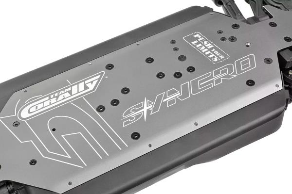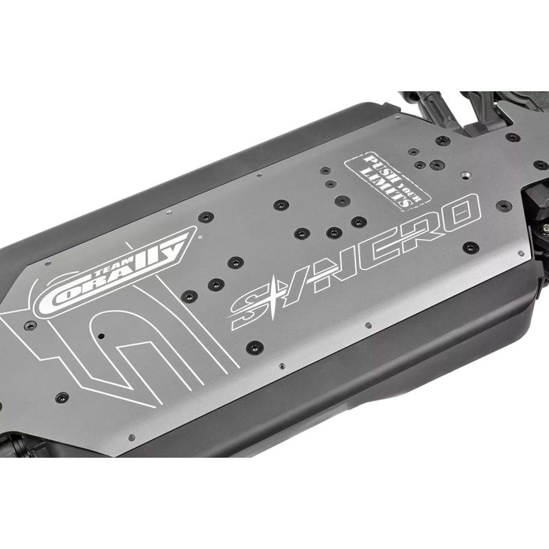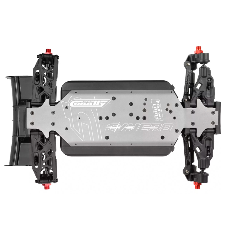 Každá součástka modelu Syncro je navržena s ohledem na odolnost a výkon. Jeho robustní systém zavěšení, inspirovaný vysoce výkonnou řadou 6S týmu Corally, obsahuje odolná ramena zavěšení, zesílené bloky řízení a odolné zadní těhlice. Tyto komponenty pracují v harmonii, aby si model snadno poradil se skoky, nerovnostmi a náročným terénem. Big Bore kompozitové tlumiče a robustní věže tlumičů udržují stabilitu modelu, zatímco lehký, ale pevný podvozek zajišťuje, že je připraven zvládnout jakékoli dobrodružství. Přidejte funkce, jako je kluzná spojka a ocelové převody a výsledkem je zábavná a spolehlivá buggy Syncro.