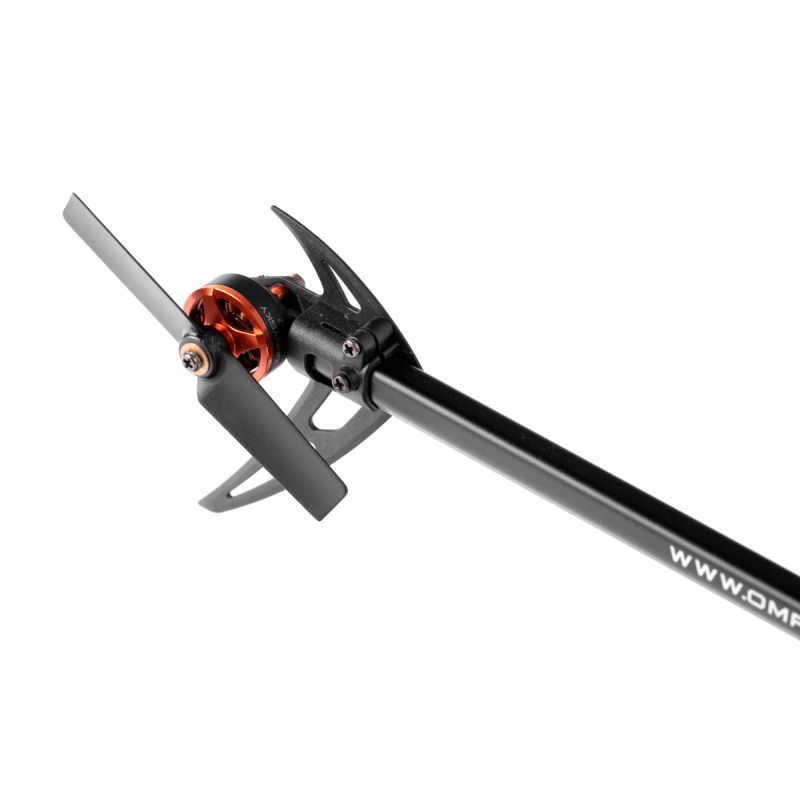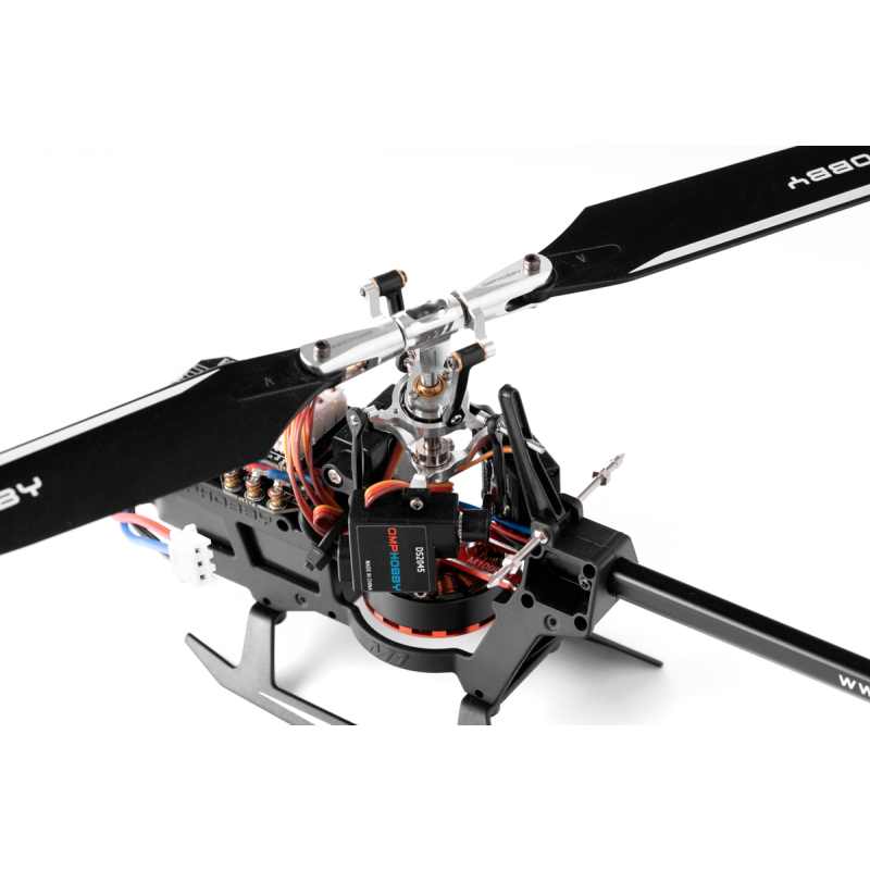 Elektroniku vrtulníku tvoří inteligentní řídící jednotka s integrovanou 3G flybarless řídící jednotkou, elektronickým regulátorem otáček s funkcí governoru a tři digitální pikoserva DS2045 s kovovými převody ovládající CCPM (120°) mixovanou desku cykliky. Pro řízení vrtulníku budete potřebovat aspoň šestikanálovou RC soupravu s miniaturním přijímačem s S.BUS portem (nebo také DSM/DSMX). Pro obyčejné poletování nemusí být vysílač ani počítačový (všechny potřebné mixy obstarává řídící jednotka), stačí jen 4 kanály „na kniplech“ a pátý kanál s dvoupolohovým přepínačem pro přepínání režimů řídící jednotky se stabilizací a 3D. Samozřejmě, pro plnohodnotné klasické a 3D létání je třeba počítačový vysílač s nastavitelnými 2-3 letovými režimy s aspoň pětibodovými křivkami kolektivu pro visení a akrobacii a dalším režimem pro autorotaci.