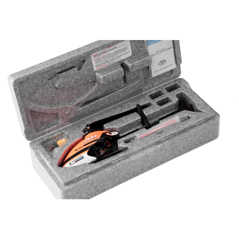 ARF set vrtulníku obsahuje: 100% sestavený a k letu připravený model M1 V1, pohonný akumulátor LiPo 7,4 V 350 mAh 50C, imbusový šroubovák, plochý klíč, nabíjecí kabel, pevnou krabici z pěnového EPP s odklopným víkem pro bezpečné přepravování a skladování modelu, návod k obsluze modelu a nastavování řídící jednotky.