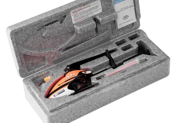 Vrtulník je dodáván kompletně sestavený s přednastavenou řídící jednotkou, takže stačí vrtulník vybalit, připojit váš S.BUS kompatibilní přijímač, nabít pohonný akumulátor, podle podrobného návodu s názornými obrázky nastavit váš vysílač, zkontrolovat všechny funkce vrtulníku - a můžete vzlétnout!