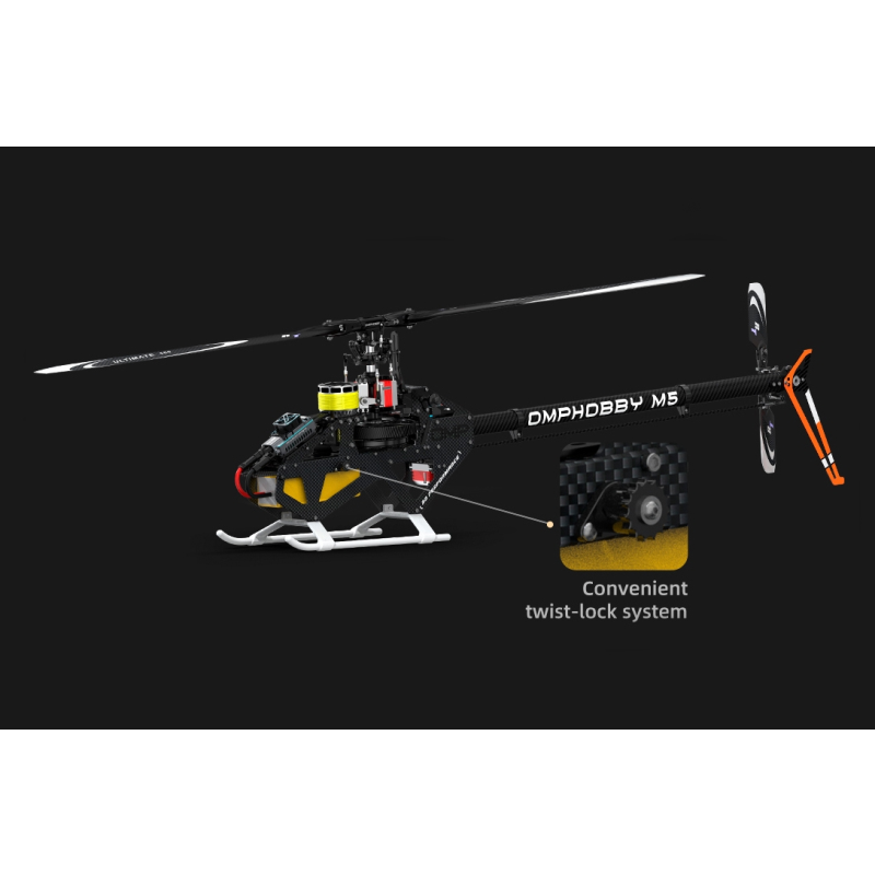OMP HOBBY M5 je vysokovýkonný vrtulník třídy „550“ konstruovaný tak, aby při instalaci odpovídajícího motoru a elektroniky vyhověl požadavkům pilotů, kteří s velkými vrtulníky teprve začínají, sportovním letcům, maketářům i 3D borcům. Při návrhu M5 byl kladen důraz na minimalizaci setrvačných momentů ve všech třech osách, což spolu se systémem ovládání nosného a vyrovnávacího rotoru s velkým rozsahem výchylek nabízí neuvěřitelnou autoritu řízení a obratnost. Byla použita celá řada řešení plně osvědčených u „většího a staršího bratra“ M7.