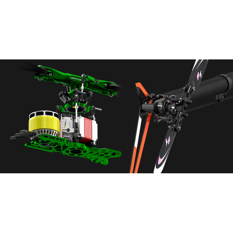 • Celokovová rotorová hlava z vysokopevnostního duralu 7075 s velkým rozsahem výchylek pro vynikající odezvu a autoritu řízení