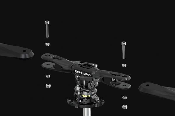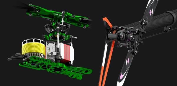 - Celokovová rotorová hlava z vysokopevnostního duralu 7075 s velkým rozsahem výchylek pro vynikající odezvu a autoritu řízení