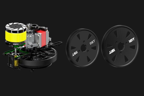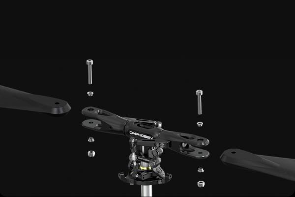 - Celokovová rotorová hlava z vysokopevnostního duralu 7075 s velkým rozsahem výchylek pro vynikající odezvu a autoritu řízení