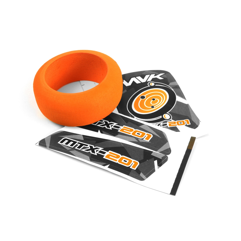Mechový kroužek volantu vysílače MTX-201 a oranžové samolepky
