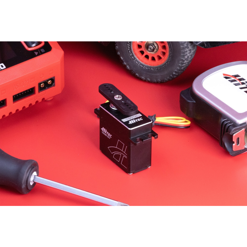 Super silné digitální programovatelné servo v celokovové krabičce se střídavým motorem standardní velikosti s ocelovými převody a výstupní hřídelí uloženou ve 2 kuličkových ložiscích se zvýšeným napájecím napětím.