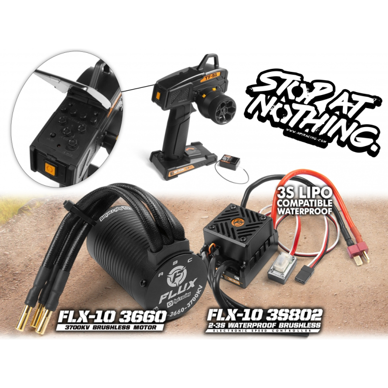 K pohonu modelu slouží nový střídavý elektromotor FLX10-3660-3700KV, který poskytuje modelu dostatek výkonu pro razantní jízdu. Motor je konstruován pro co nejlepší účinnost při zachování spolehlivosti a životnosti. O řízení otáček se stará obousměrný regulátor otáček FLX-10 3S802 Flux, který nabízí možnost programování pomací programovací karty Hobbywing. Regulátor je navíc vybaven integrovaným ventilátorem, který zajišťuje jeho dostatečné chlazení. Ovládání zajišťuje inovovaná volantová RC souprava TF-51 pracující v pásmu 2,4 GHz, která nově obsahuje funkci exponenciály řízení pro precizní ovládání modelu i při vysokých rychlostech.