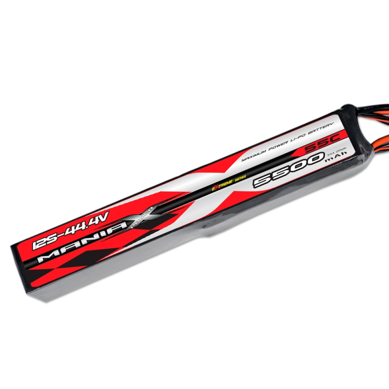 Akumulátory ManiaX řady eXtreme 55/110C mají standardní vybíjecí proud 55C, špičkový až 110C a možnost rychlého nabíjení (1-3C). Jsou určeny pro náročné aplikace v modelech letadel pro klasickou i 3D akrobacii, modelech poháněných dmychadlem a vrtulnících pro klasickou i 3D akrobacii. Vysoká proudová zatížitelnost zaručuje maximální využití výkonu motoru a dovoluje razantní styl létání při zachování velmi dobré dlouhodobé životnosti.
