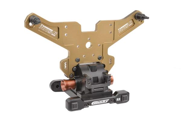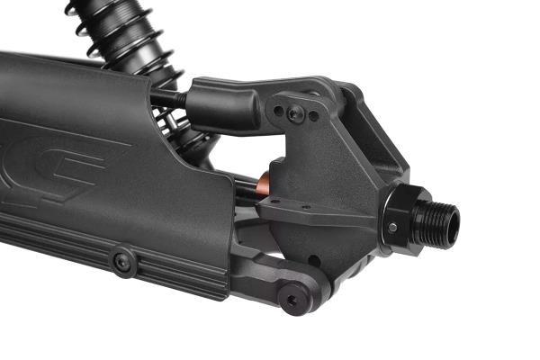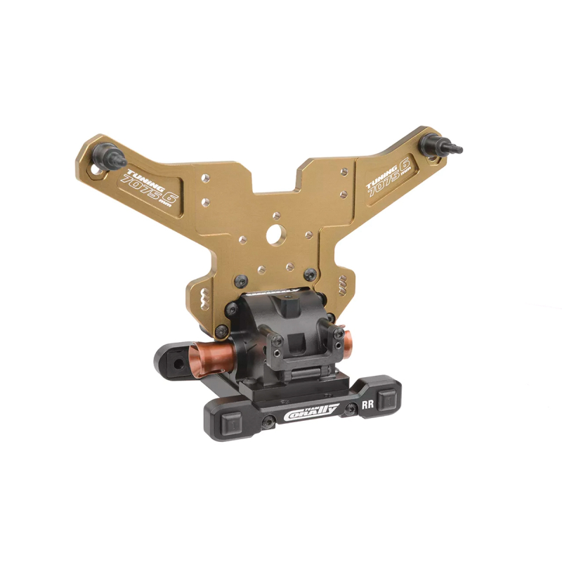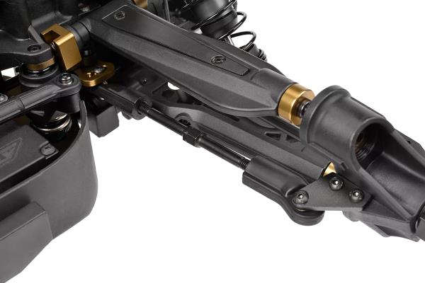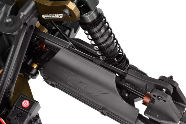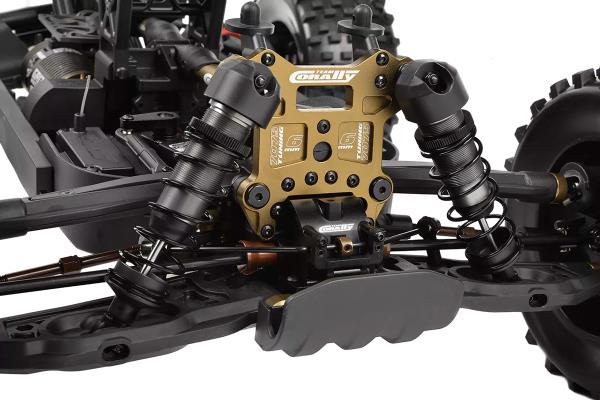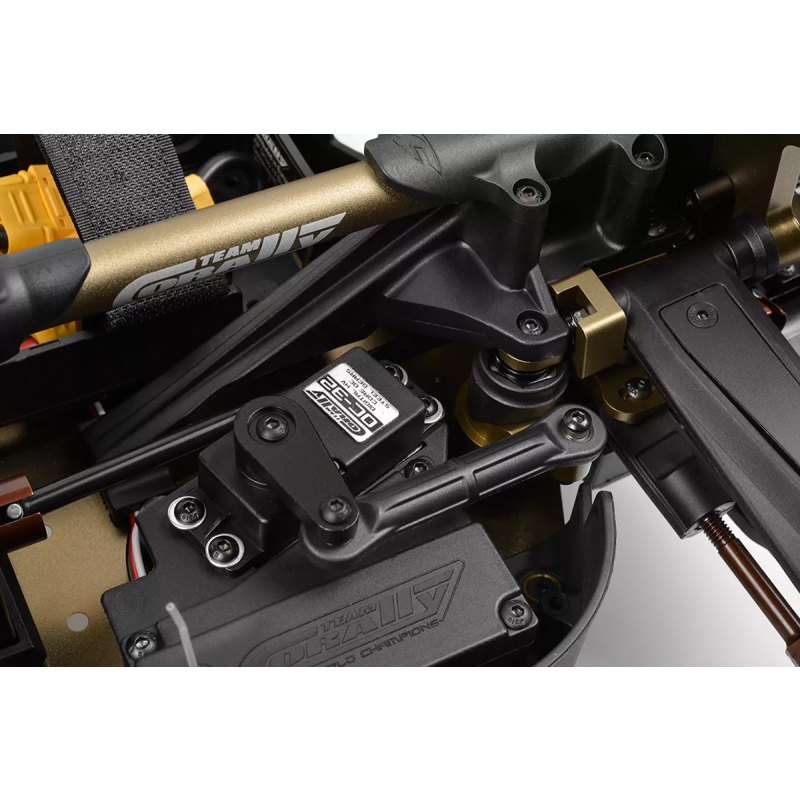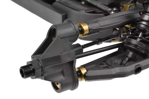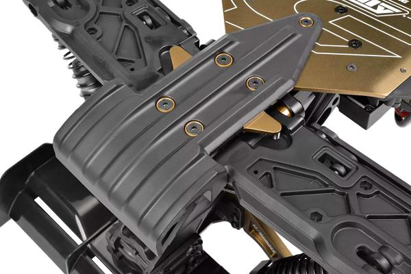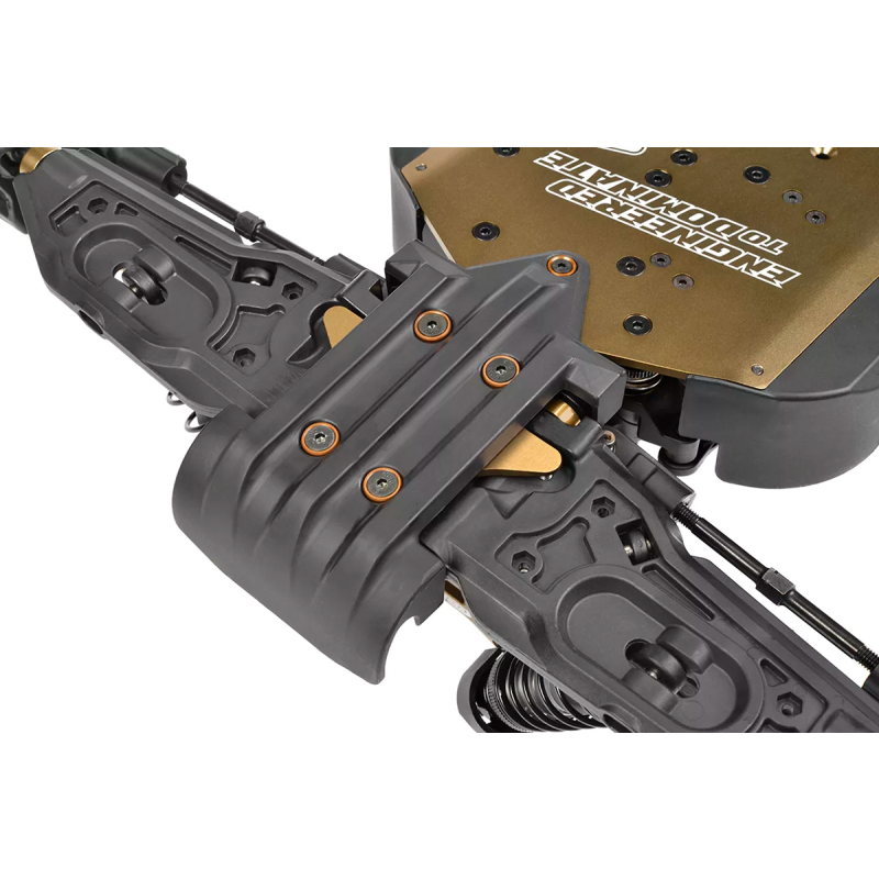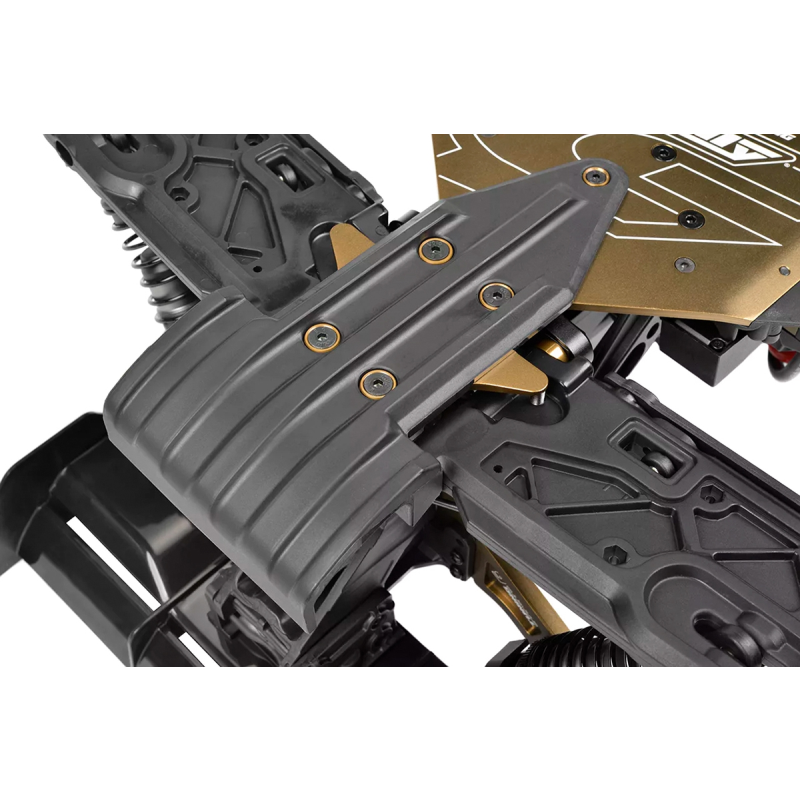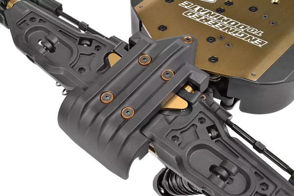 Srdcem modelu Kagama Limited Edition je jeho nekompromisní základ z hliníku 7075 – navržený pro extrémní odolnost a přesné ovládání. Zlatě eloxované hliníkové plato podvozku z hliníku 7075 poskytuje nejen bezkonkurenční pevnost, ale také výjimečný styl. Pro další zpevnění konstrukce jsou hnací ústrojí zajištěny CNC obráběnými přepážkami z hliníku 7075, které zabraňují nežádoucímu pohybu a zajišťují plynulý a spolehlivý přenos výkonu i při extrémním zatížení. Mezitím 6mm hliníkové věže tlumičů 7075 v kombinaci s novými distančními vložkami tlumičů poskytují pevnou podporu zavěšení, což umožňuje osvědčeným tlumičům Kagama konzistentně absorbovat nárazy – bez ohledu na to, jak tvrdě na truck tlačíte. Kromě toho hliníkový servo saver bell crank 7075 zvyšuje přesnost a odolnost řízení a zajišťuje přímé a citlivé ovládání za všech jízdních podmínek.