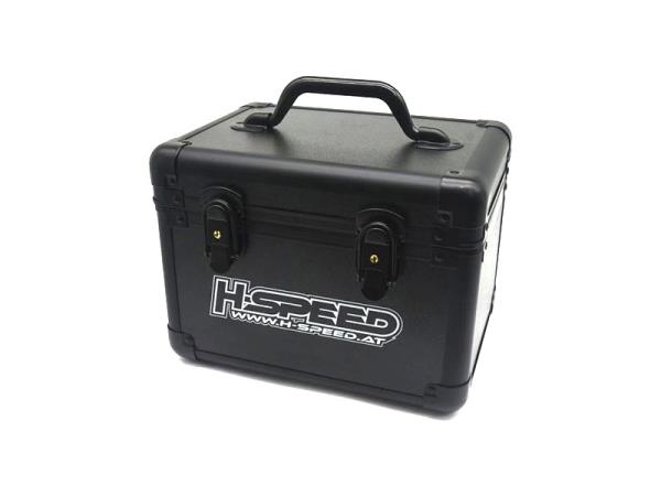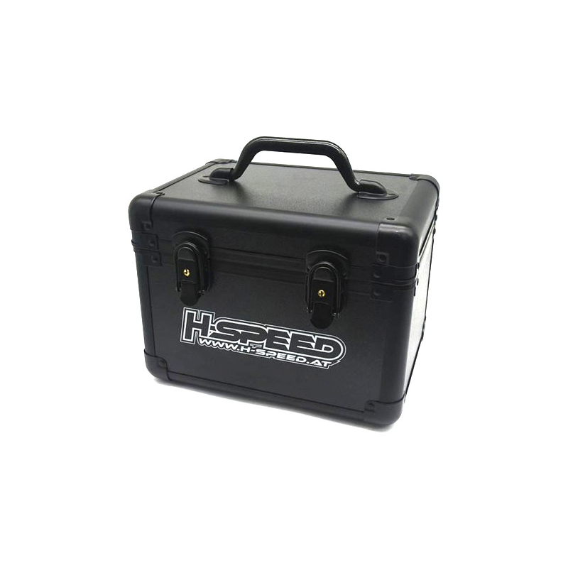Přepravní a úložný H-Speed kufr na LiPo akumulátory a modelářské příslušenství velikosti M s rozměry 25 x 18 x 18 cm. Uzavírání výklopného víka dvěma pákovými přezkami se zámkem. Dva klíče v balení. Sklopná rukojeť. Vnitřní polstrování z pěnové hmoty. Plastové nožičky.