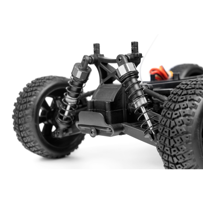 Konstrukce je převážně plastová, k pohonu je použit střídavý motor velikosti "380", který přes stálý převod pohání všechna čtyři kola (4WD). Palubní část RC soupravy sestává z 2,4Ghz přijímače, obousměrného regulátoru otáček a serva řízení. Podvozek konstrukčně vychází z větších modelů, takže se může pochlubit nezávislým zavěšením kol, olejovými tlumiči apod. K ovládání je použita RC souprava pracující v pásmu 2,4Ghz.