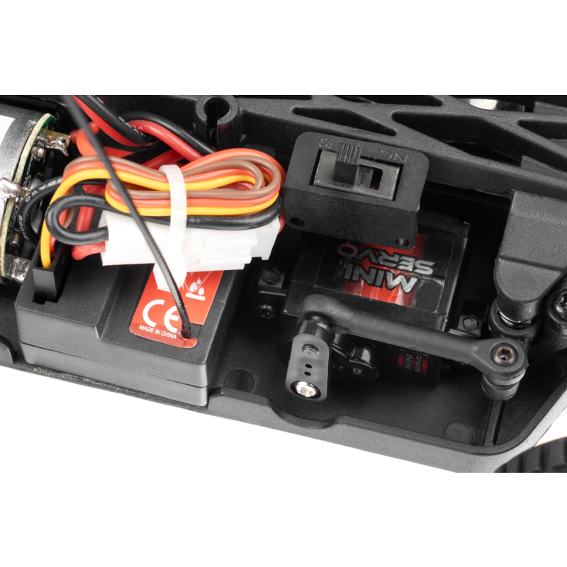 Konstrukce je převážně plastová, k pohonu je použit stejnosměrný motor velikosti "380", který přes stálý převod pohání všechna čtyři kola (4WD). Palubní část RC soupravy sestává z jednotky 2v1 (která v sobě ukrývá přijímač a obousměrný regulátor) a serva řízení. Podvozek konstrukčně vychází z větších modelů, takže se může pochlubit nezávislým zavěšením kol, olejovými tlumiči apod. K ovládání je použita RC souprava pracující v pásmu 2,4Ghz.