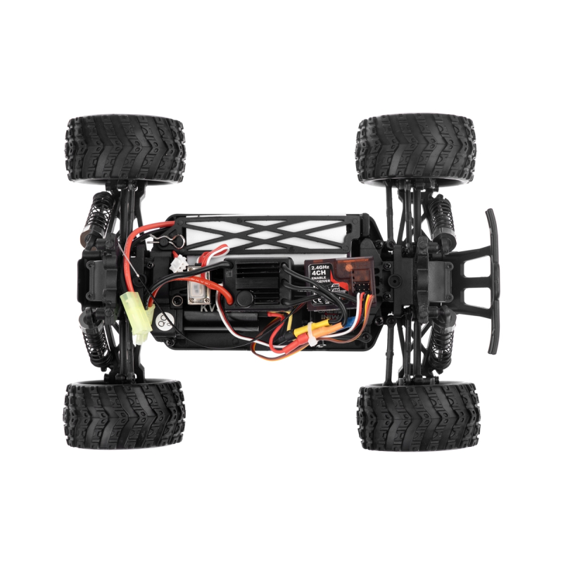 Konstrukce je převážně plastová, k pohonu je použit střídavý motor velikosti "380", který přes stálý převod pohání všechna čtyři kola (4WD). Palubní část RC soupravy sestává z 2,4Ghz přijímače, obousměrného regulátoru otáček a serva řízení. Podvozek konstrukčně vychází z větších modelů, takže se může pochlubit nezávislým zavěšením kol, olejovými tlumiči apod. K ovládání je použita RC souprava pracující v pásmu 2,4Ghz.