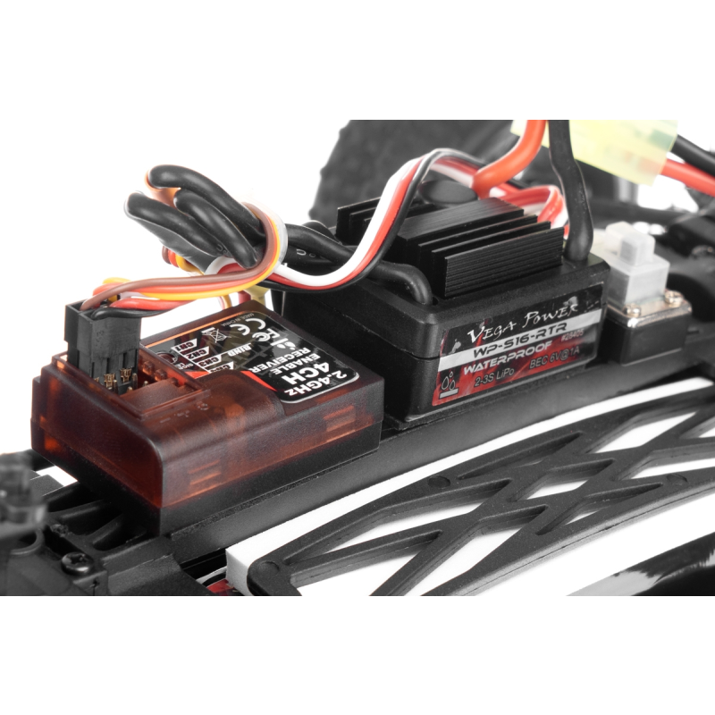 Konstrukce je převážně plastová, k pohonu je použit střídavý motor velikosti "380", který přes stálý převod pohání všechna čtyři kola (4WD). Palubní část RC soupravy sestává z 2,4Ghz přijímače, obousměrného regulátoru otáček a serva řízení. Podvozek konstrukčně vychází z větších modelů, takže se může pochlubit nezávislým zavěšením kol, olejovými tlumiči apod. K ovládání je použita RC souprava pracující v pásmu 2,4Ghz.