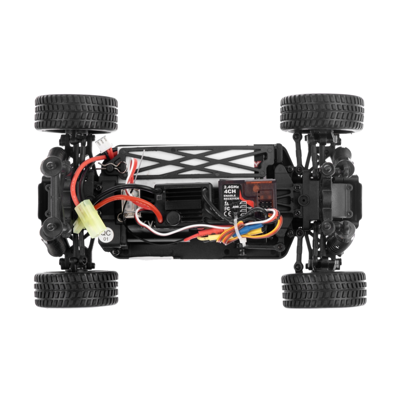 Konstrukce je převážně plastová, k pohonu je použit střídavý motor velikosti "380", který přes stálý převod pohání všechna čtyři kola (4WD). Palubní část RC soupravy sestává z 2,4Ghz přijímače, obousměrného regulátoru otáček a serva řízení. Podvozek konstrukčně vychází z větších modelů, takže se může pochlubit nezávislým zavěšením kol, olejovými tlumiči apod. K ovládání je použita RC souprava pracující v pásmu 2,4Ghz.