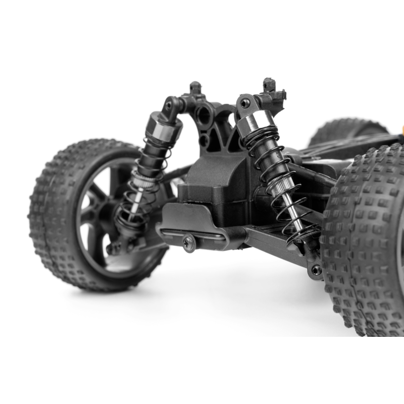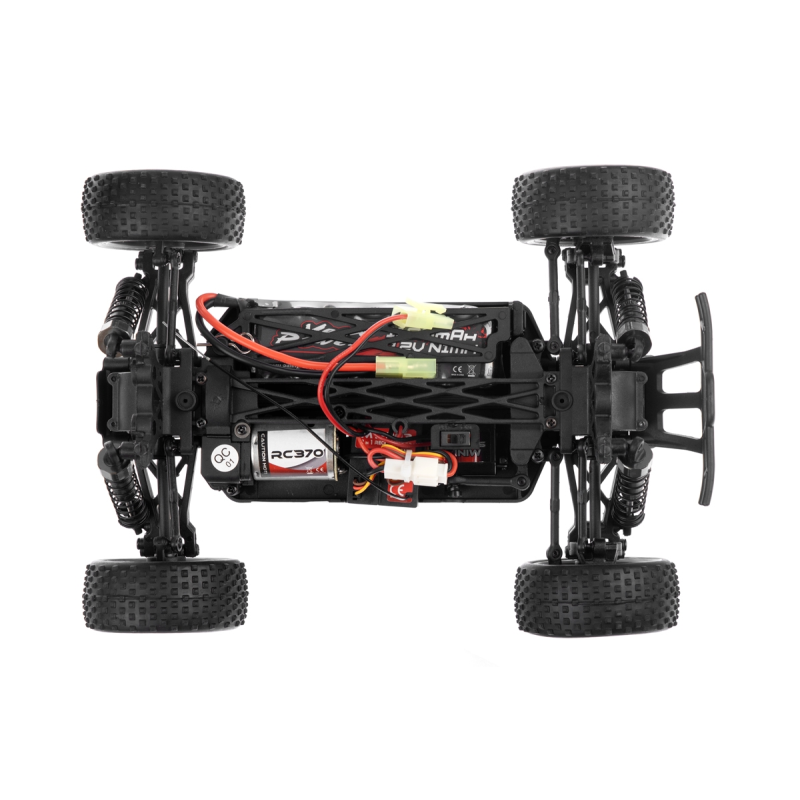 Konstrukce je převážně plastová, k pohonu je použit stejnosměrný motor velikosti "380", který přes stálý převod pohání všechna čtyři kola (4WD). Palubní část RC soupravy sestává z jednotky 2v1 (která v sobě ukrývá přijímač a obousměrný regulátor) a serva řízení. Podvozek konstrukčně vychází z větších modelů, takže se může pochlubit nezávislým zavěšením kol, olejovými tlumiči apod. K ovládání je použita RC souprava pracující v pásmu 2,4Ghz.