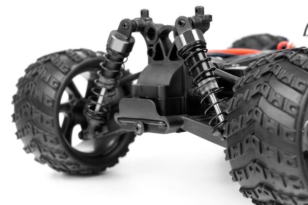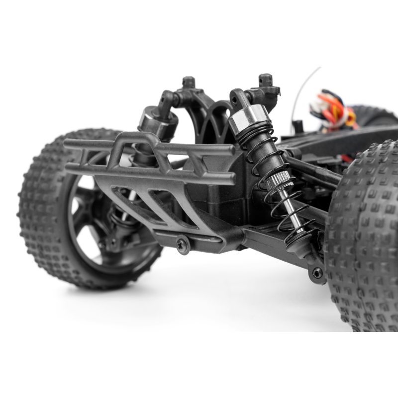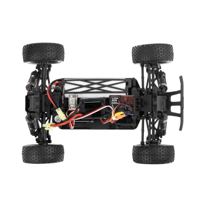 Konstrukce je převážně plastová, k pohonu je použit střídavý motor velikosti "380", který přes stálý převod pohání všechna čtyři kola (4WD). Palubní část RC soupravy sestává z 2,4Ghz přijímače, obousměrného regulátoru otáček a serva řízení. Podvozek konstrukčně vychází z větších modelů, takže se může pochlubit nezávislým zavěšením kol, olejovými tlumiči apod. K ovládání je použita RC souprava pracující v pásmu 2,4Ghz.