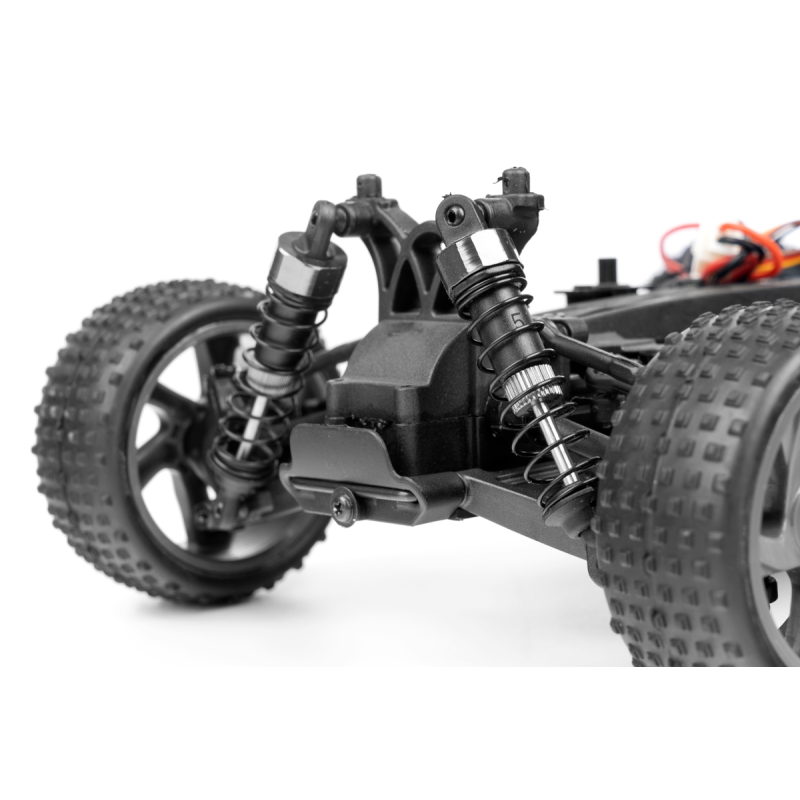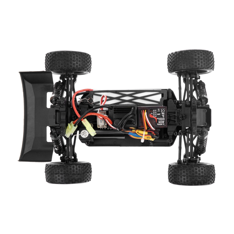 Konstrukce je převážně plastová, k pohonu je použit střídavý motor velikosti "380", který přes stálý převod pohání všechna čtyři kola (4WD). Palubní část RC soupravy sestává z 2,4Ghz přijímače, obousměrného regulátoru otáček a serva řízení. Podvozek konstrukčně vychází z větších modelů, takže se může pochlubit nezávislým zavěšením kol, olejovými tlumiči apod. K ovládání je použita RC souprava pracující v pásmu 2,4Ghz.