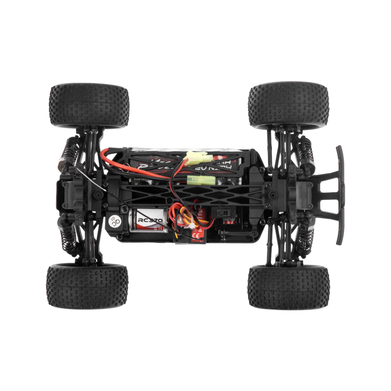 Konstrukce je převážně plastová, k pohonu je použit stejnosměrný motor velikosti "380", který přes stálý převod pohání všechna čtyři kola (4WD). Palubní část RC soupravy sestává z jednotky 2v1 (která v sobě ukrývá přijímač a obousměrný regulátor) a serva řízení. Podvozek konstrukčně vychází z větších modelů, takže se může pochlubit nezávislým zavěšením kol, olejovými tlumiči apod. K ovládání je použita RC souprava pracující v pásmu 2,4Ghz.