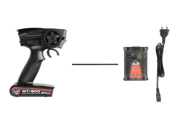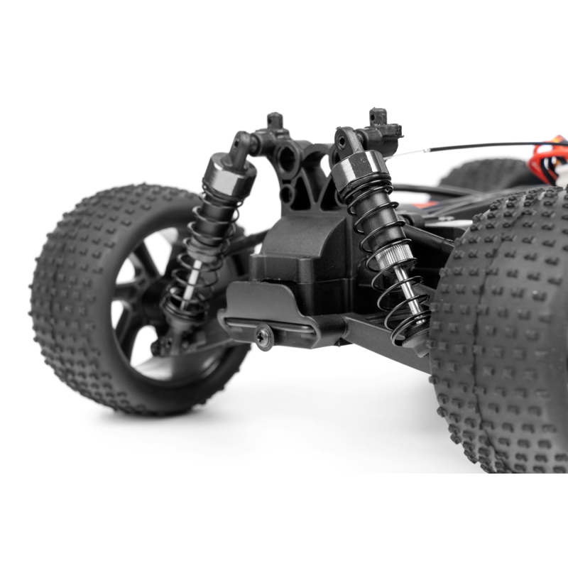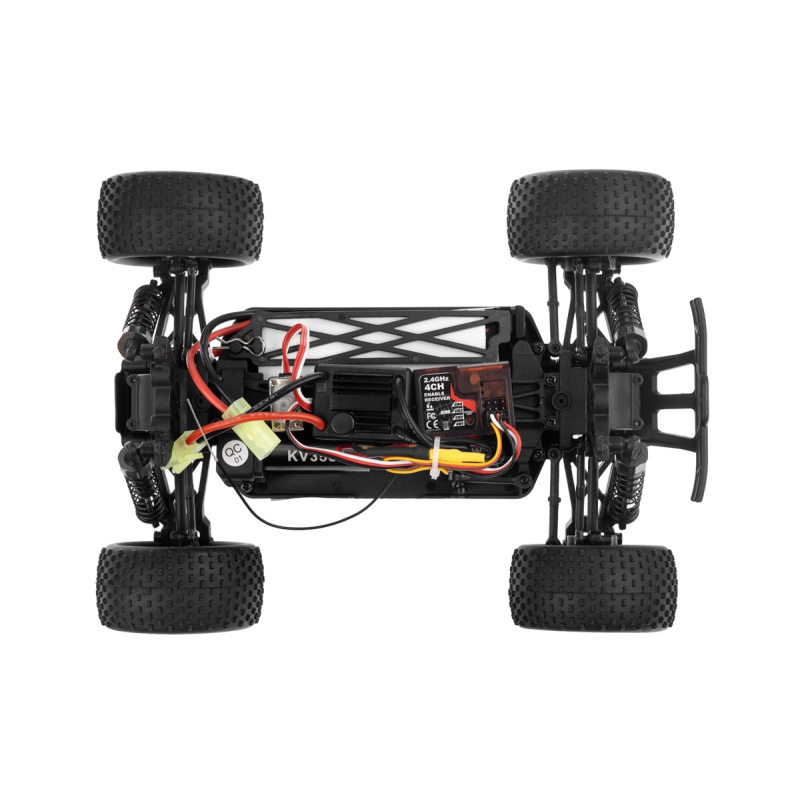 Konstrukce je převážně plastová, k pohonu je použit střídavý motor velikosti "380", který přes stálý převod pohání všechna čtyři kola (4WD). Palubní část RC soupravy sestává z 2,4Ghz přijímače, obousměrného regulátoru otáček a serva řízení. Podvozek konstrukčně vychází z větších modelů, takže se může pochlubit nezávislým zavěšením kol, olejovými tlumiči apod. K ovládání je použita RC souprava pracující v pásmu 2,4Ghz.