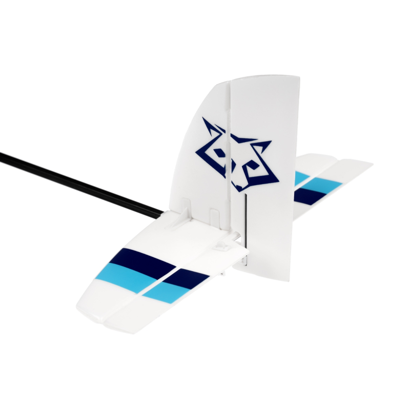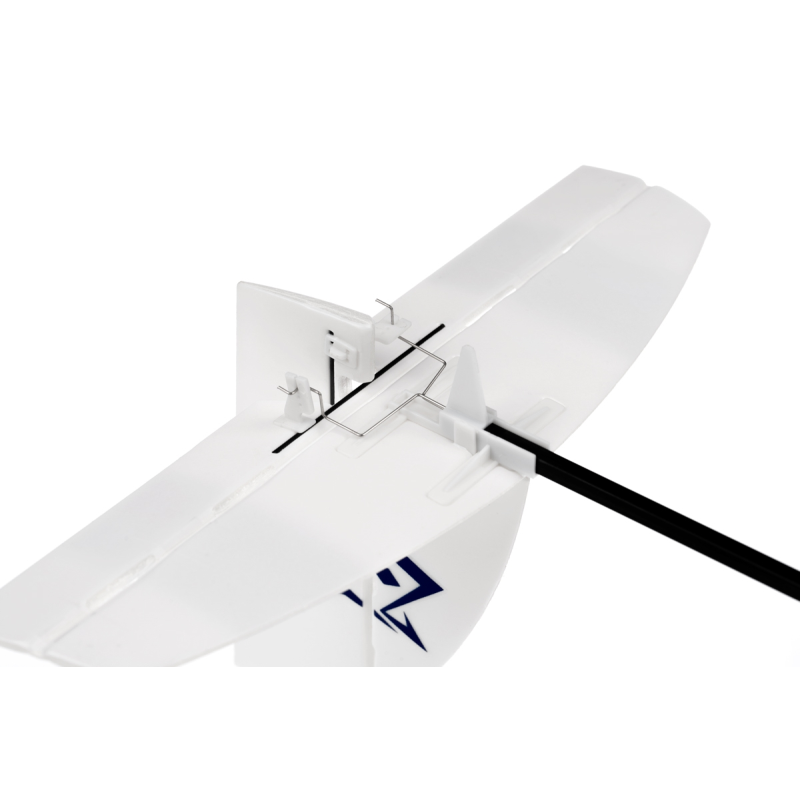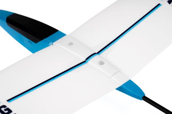 Křídlo je z takřka nezničitelného pěnového EPO s uhlíkovým hlavním nosníkem a plastovými výztuhami koncových oblouků opatřenými vždy trojicí otvorů pro zasunutí uhlíkového kolíčku pro diskový start. Model tak mohou stejně snadno „vrhat“ praváci i leváci; posouváním polohy kolíčku vzhledem k těžišti můžete optimalizovat chování modelu při startu s ohledem na sílu větru a vašeho švihu. Křídlo se k trupu upevňuje dvěma polyamidovými šrouby, takže celý model je možno složit do celkem malého objemu pro cestu na výlet nebo dovolenou.