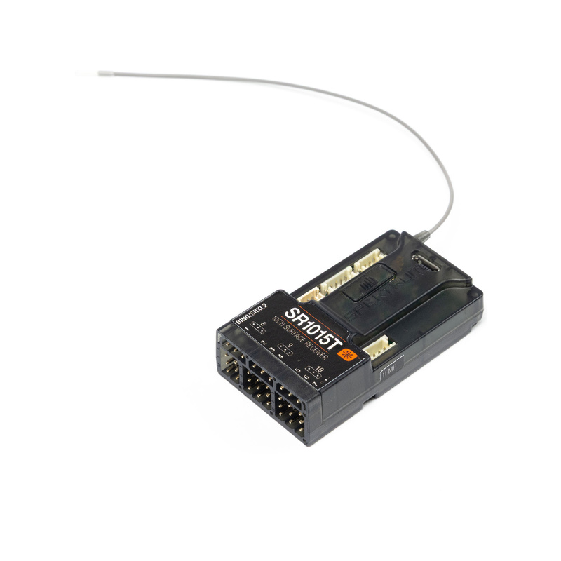 RC přijímač Spektrum SR1015T s 10 kanály a modulací DSMR+/DSMR pro RC modely auta a lodí. 10 plně proporcionálních kanálů umožňuje větší flexibilitu a všestranné ovládání pro pomocné systémy, jako jsou navijáky, světla atd. Má vynikající dosah a odezvu, zejména v místech, kde je více systémů pracujících v pásmu 2,4 GHz. Disponuje plným dosahem telemetrie. Podporuje technologii Spektrum Smart přes protokol SRXL2 - komunikuje s elektronickými regulátory Spektrum Smart FIRMA a přenáší telemetrii bez senzorů. Obsahuje porty pro zapojení telemetrických čidel - VOLT pro měření napětí, RPM pro měření otáček, TEMP pro měření teploty a dále vstupem XBUS a Micro USB konektor. Pro snadné párování je z vrchní strany párovací tlačítko.