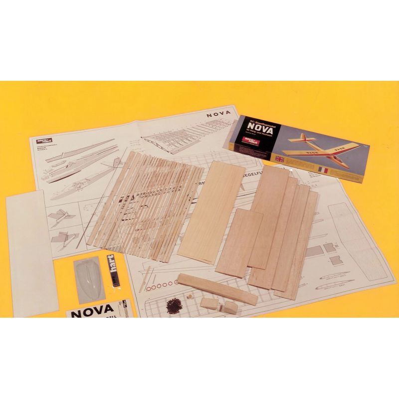 Nova je originální retro model z roku 1961. Stavebnice je originál (ne reprodukce). Všechny díly jsou vyrobeny podle dobových standardů kvality. Model vykazuje vynikající letovou stabilitu na svazích a při vzletech. Konstrukce křídla plochými žebry je neobvyklá, což tomuto modelu dává velkou odolnost proti deformaci. Nova se snadno sestavuje podle přehledných výkresů. Kromě dřevěných dílů a výkresu obsahuje stavebnice také vakuově tvarovaný překryt kabiny. Stavebnice demonstruje instalaci RC směrovky. Výškovku lze nainstalovat dle vlastního uvážení. Upozornění: Tento model je určen pro zkušené modeláře, kteří mají rádi retro modely ze 60. let. Není vhodný pro začátečníky v modelářství.