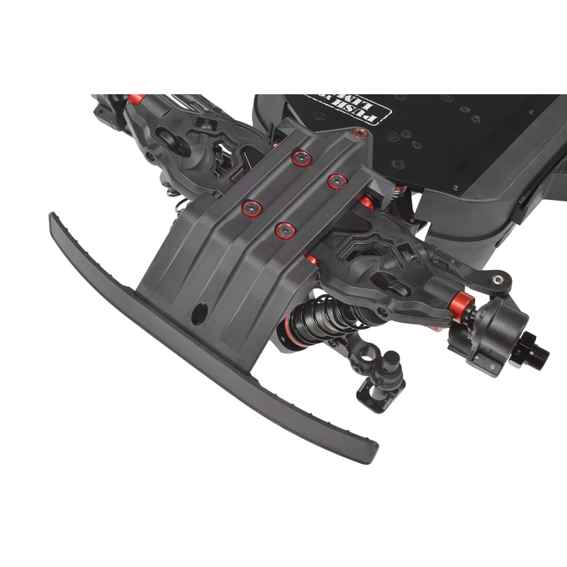 Jádrem modelu SHIROI je CNC frézované 3mm hliníkové plato podvozku, vyztužené vzpěrami a vysokými kompozitními bočními chrániči. Tato tuhá kostra je konstruována tak, aby s lehkostí zvládala jízdu ve vysoké rychlosti, drsný terén a náročné dopady. Neprůstřelné ocelové hnací ústrojí s CNC frézovanými ozubenými koly, třemi diferenciály naplněnými olejem a odolnými hnacími hřídeli CVD zajišťuje maximální účinnost a spolehlivost jak při napájení 4S, tak i 6S LiPo.