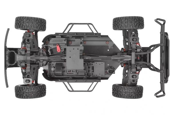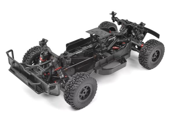 Jádrem modelu SHIROI je CNC frézované 3mm hliníkové plato podvozku, vyztužené vzpěrami a vysokými kompozitními bočními chrániči. Tato tuhá kostra je konstruována tak, aby s lehkostí zvládala jízdu ve vysoké rychlosti, drsný terén a náročné dopady. Neprůstřelné ocelové hnací ústrojí s CNC frézovanými ozubenými koly, třemi diferenciály naplněnými olejem a odolnými hnacími hřídeli CVD zajišťuje maximální účinnost a spolehlivost jak při napájení 4S, tak i 6S LiPo.