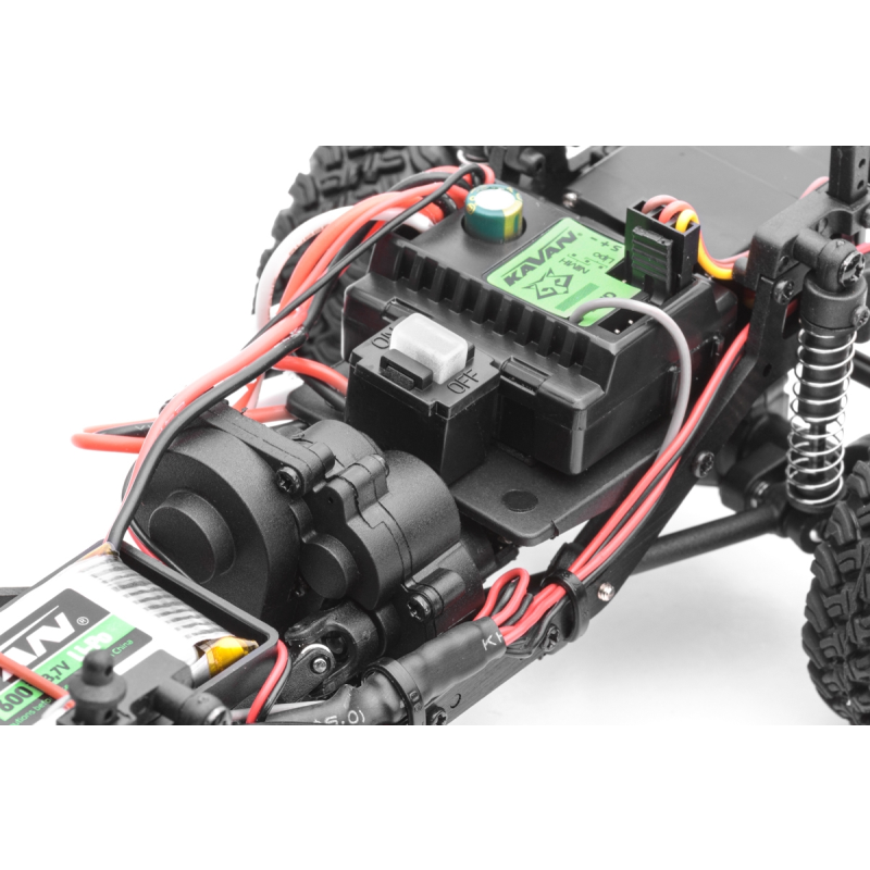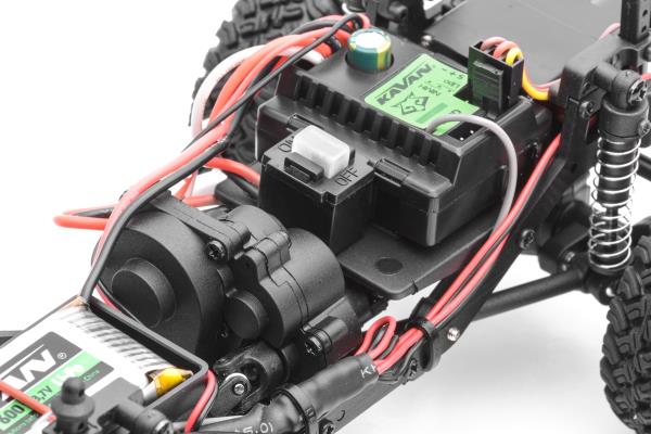 Silný motor pomůže bez problémů zkrotit redukční převodovka. Digitální servo a kvalitní systém dálkového ovládání pak dodá jistotu a přesnost. Vysílač obsahuje potřebná nastavení pro vystředění, reverz i koncové body a díky snadnému rozložení nezabere žádné místo navíc.