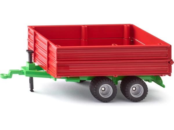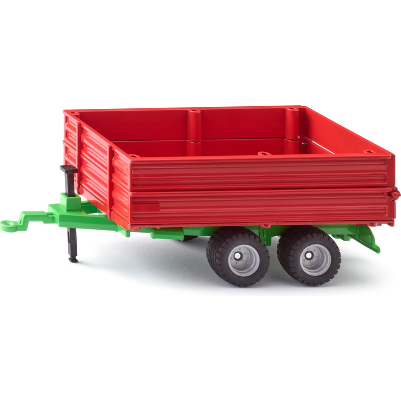 Kovový model přívěsu v měřítku 1:32. Korbu přívěsu lze zvednout pro vysypání nákladu, zadní dveře jsou výklopné, obsažena je výsuvná stojka, kola jsou gumová, bočnice lze snížit. Určeno pro zapojení k modelů Siku Farmer 1:32 s tažným zařízením. Vhodné pro hraní i sběratelství. Kvalitní zpracování z kovu a plastu.