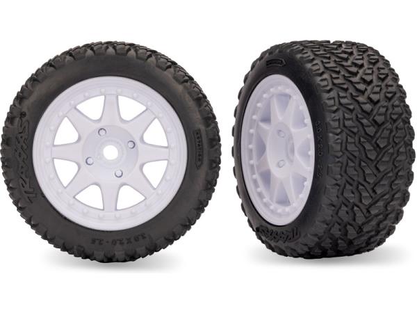 Kompletní přední kola pro RC model auta Traxxas Mini Rally. Disk 8-spoke 2.5" bílý, pneu Rally, přední (2 ks). Rozměry ø76x51mm. Unašeč - šestihran 12 mm.