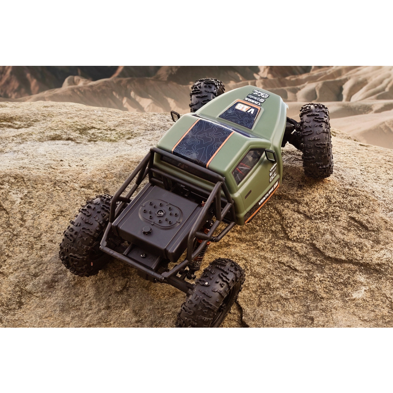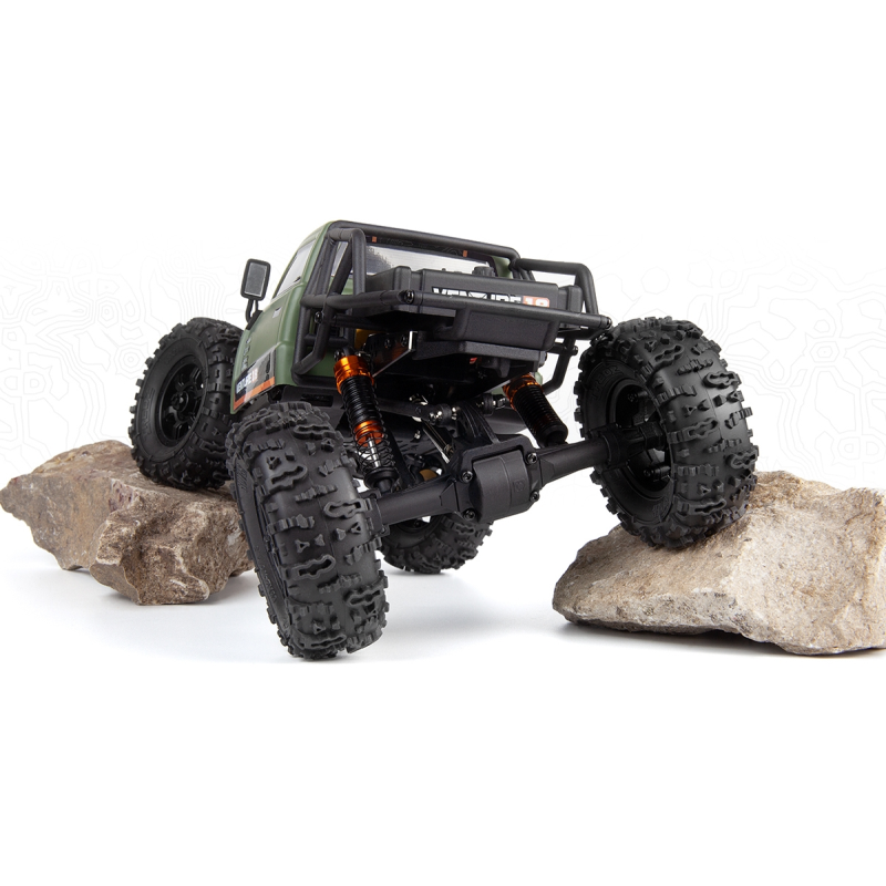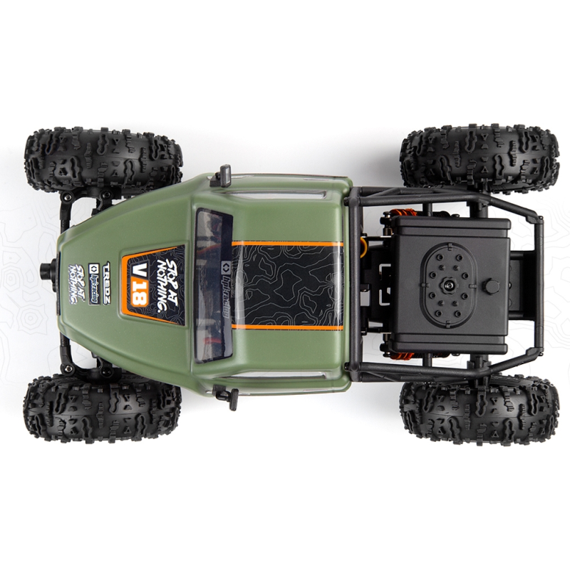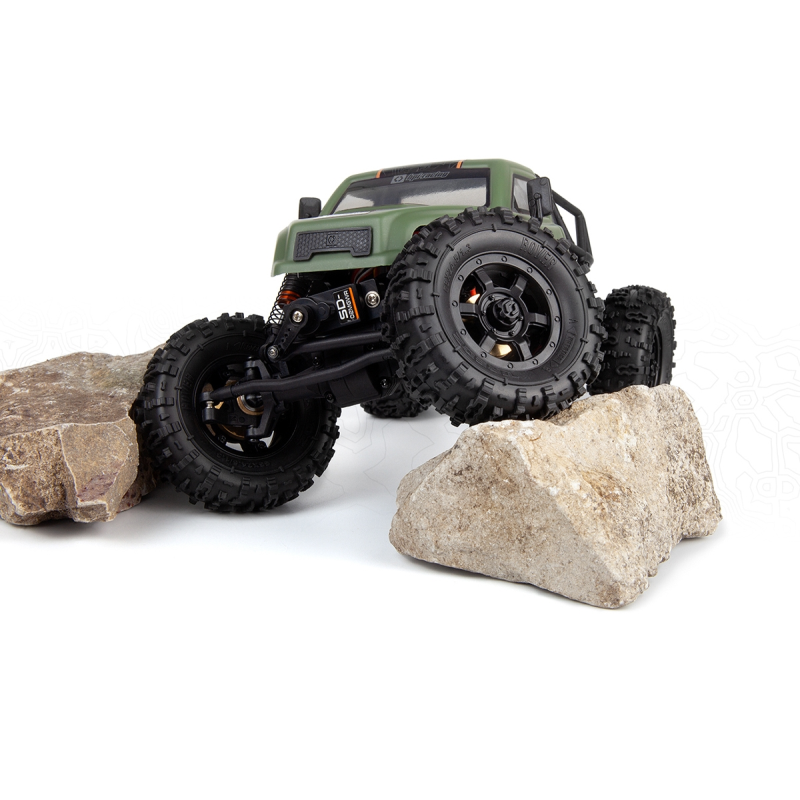 V kombinaci s detailní karoserií Ridgeline Half Cab a pneumatikami ROVER 1,3" Pink Dot je připraven čelit technicky náročnému terénu ihned po vybalení. Bezsponková karoserie z polykarbonátu je předem lakovaná v barvě matné zelené nebo gunmetalové šedé podle vašeho výběru a má průhledná okna, detailní mřížku chladiče, funkční zrcátka a trubkový rám se zadní nádrží.