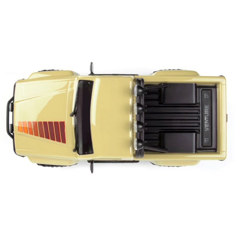 Karoserie je předlakovaná a obsahuje také čirá okna a maketové doplňky, jako jsou znaky Toyota, přední mřížka, kliky dveří, stěrače, funkční zrcátka, a navíc trubkové nárazníky a ochranná klec pro vysokou úroveň realismu. Namontovaná sada LED světel ještě více zvyšuje autenticitu a dodává modelu Venture18 další vrstvu detailů, která skutečně vynikne. Světla lze navíc ovládat přímo z vysílače.