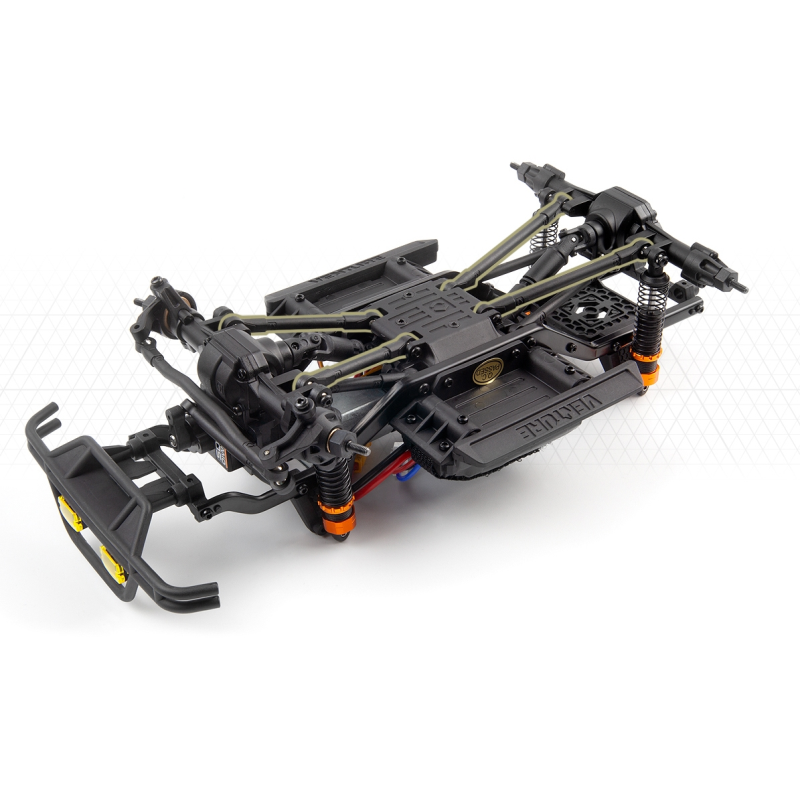 Stejně jako jeho větší bratr kombinuje Venture18 odolný podvozek z tvarovaných ocelových žebřin s realistickým odpružením a hnacím ústrojím. I přes své kompaktní rozměry je tento vůz nabitý působivými funkcemi, včetně nové celokovové dvoustupňové převodovky, čtyřprvkového předního a zadního zavěšení a univerzálních teleskopických protiběžných hnacích hřídelí. Díky autenticky odstupňovaným olejovým tlumičům a plně uzamčeným diferenciálům nabízí Venture18 spolehlivé jízdní vlastnosti ve všech terénních podmínkách.