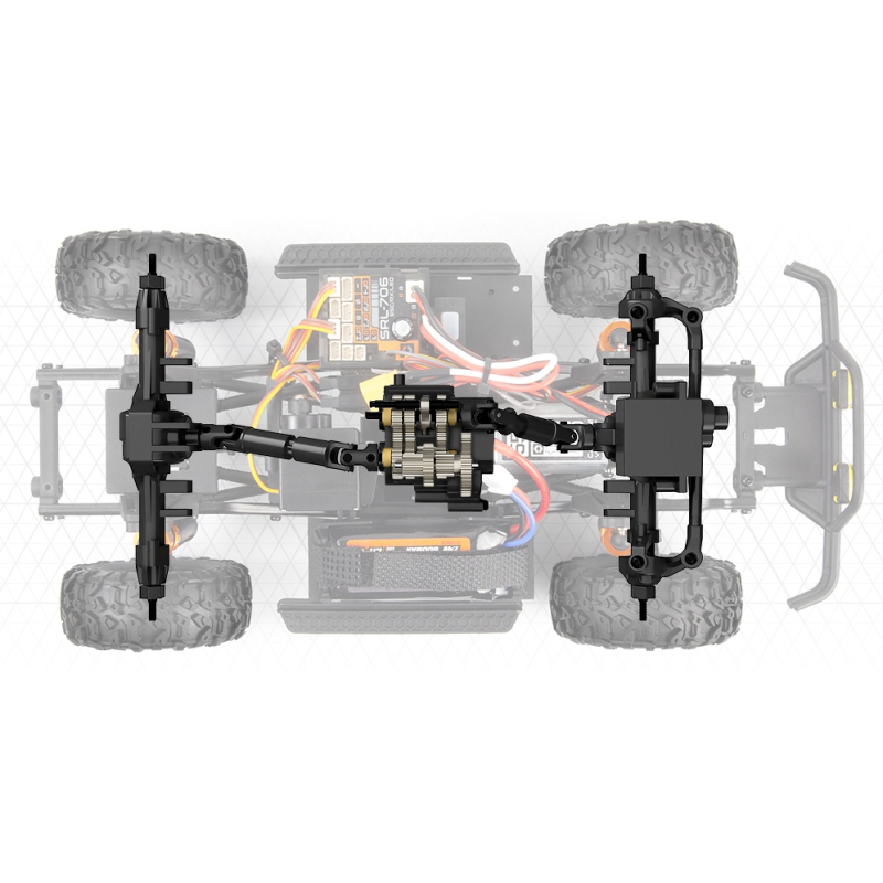 Nízký převod se může pochlubit působivým převodovým poměrem 81,44:1, který poskytuje výjimečné schopnosti při pomalém průchodu na úzkých, technických stezkách a překážkách. A když na rovném, otevřeném úseku potřebujete přidat na rychlosti - nebo prostě jen potřebujete vysoký výkon, abyste se dostali do stoupání - stačí na vysílači přeřadit na vysoký převod, čímž získáte převodový poměr 20,36:1, který vám nabídne pořádnou rychlost.