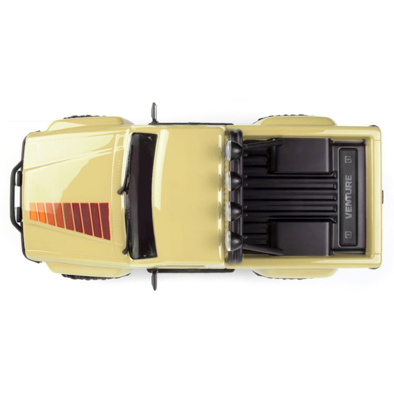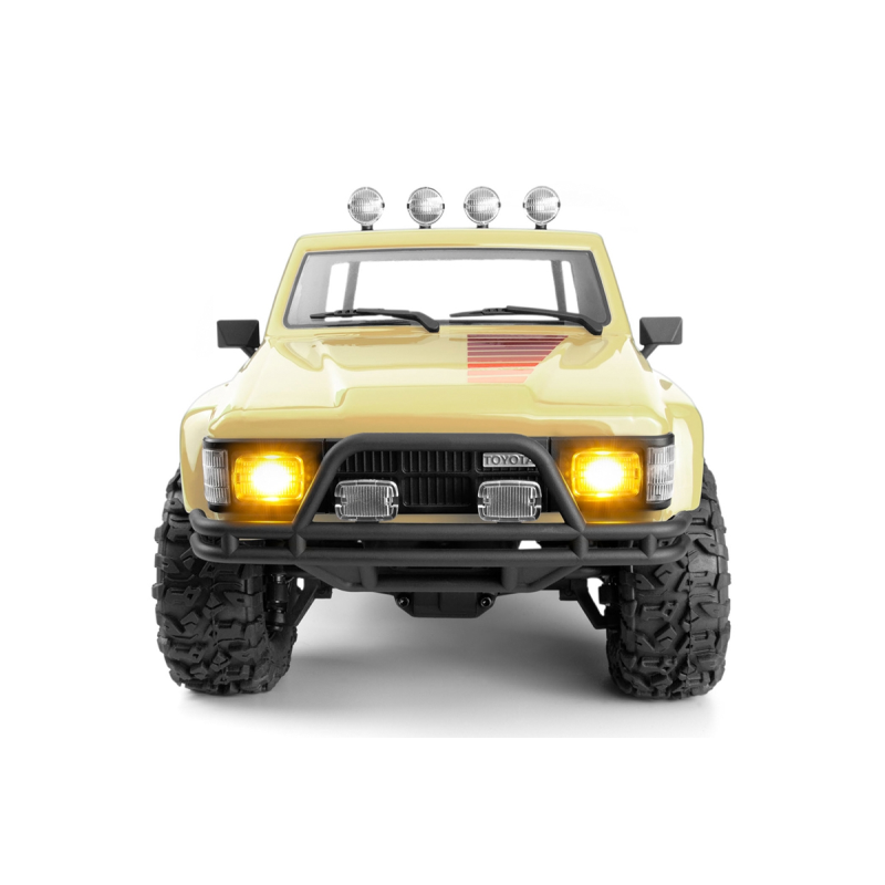 Karoserie je předlakovaná a obsahuje také čirá okna a maketové doplňky, jako jsou znaky Toyota, přední mřížka, kliky dveří, stěrače, funkční zrcátka, a navíc trubkové nárazníky a ochranná klec pro vysokou úroveň realismu. Namontovaná sada LED světel ještě více zvyšuje autenticitu a dodává modelu Venture18 další vrstvu detailů, která skutečně vynikne. Světla lze navíc ovládat přímo z vysílače.