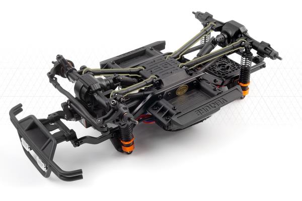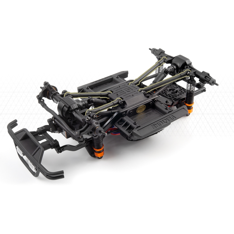 Stejně jako jeho větší bratr kombinuje Venture18 odolný podvozek z tvarovaných ocelových žebřin s realistickým odpružením a hnacím ústrojím. I přes své kompaktní rozměry je tento vůz nabitý působivými funkcemi, včetně nové celokovové dvoustupňové převodovky, čtyřprvkového předního a zadního zavěšení a univerzálních teleskopických protiběžných hnacích hřídelí. Díky autenticky odstupňovaným olejovým tlumičům a plně uzamčeným diferenciálům nabízí Venture18 spolehlivé jízdní vlastnosti ve všech terénních podmínkách.