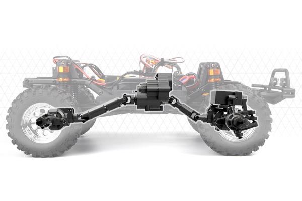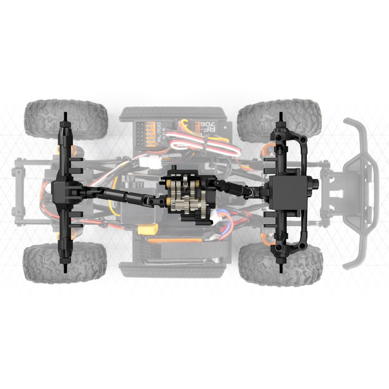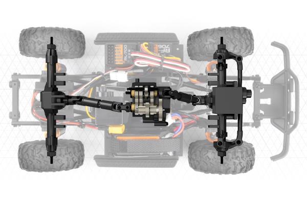 Nízký převod se může pochlubit působivým převodovým poměrem 81,44:1, který poskytuje výjimečné schopnosti při pomalém průchodu na úzkých, technických stezkách a překážkách. A když na rovném, otevřeném úseku potřebujete přidat na rychlosti - nebo prostě jen potřebujete vysoký výkon, abyste se dostali do stoupání - stačí na vysílači přeřadit na vysoký převod, čímž získáte převodový poměr 20,36:1, který vám nabídne pořádnou rychlost.