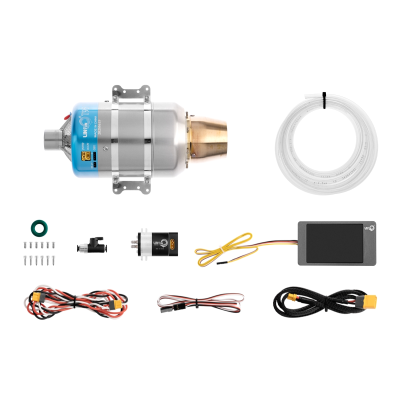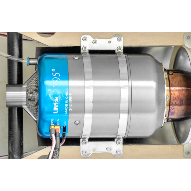 Sada motoru obsahuje: Proudový motor Linton T95-GT s řídící jednotkou, motorové lože, pozemní programovací jednotku, palivové čerpadlo, sadu upevňovacích šroubů, palivové potrubí, sadu kabelů a náhradních dílů, návod.
