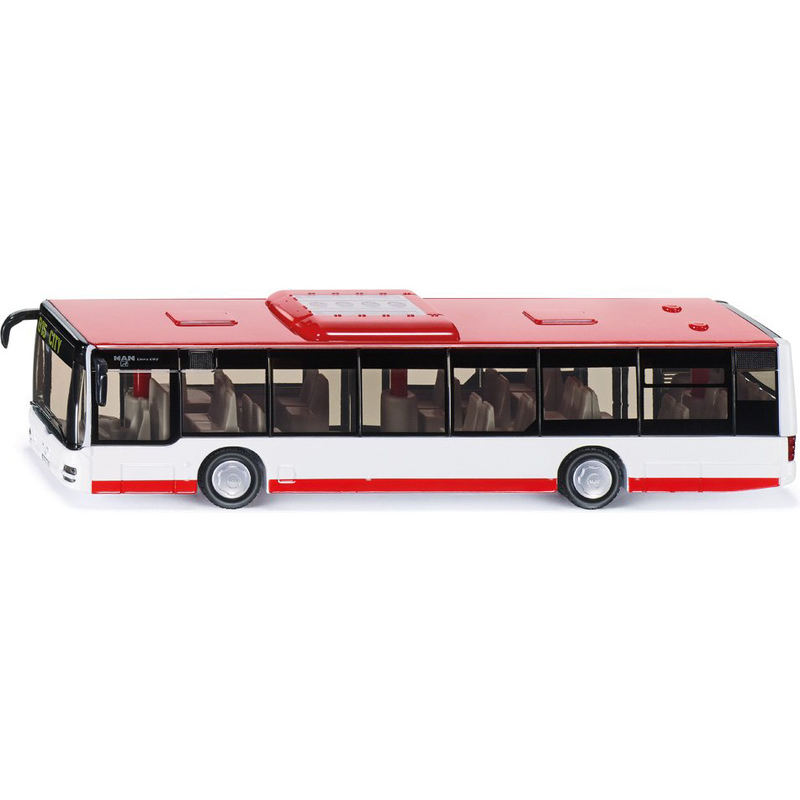 Kovový model autobusu MAN Lions City v měřítku 1:50 od značky Siku. Model má pogumované pneumatiky (dvojité na zadní nápravě), dvojí otevírací dveře na pravé straně, otevírací víko motoru a tónovaná okna. Vhodné pro hraní i sběratelství. Kvalitní zpracování z kovu a plastu.