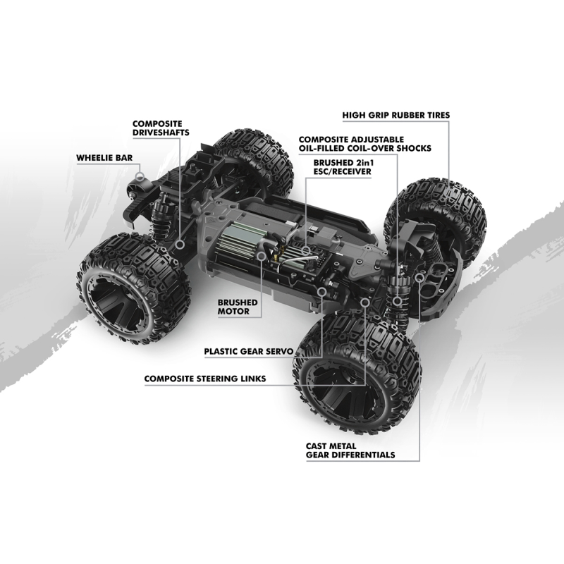 Tento monster truck v měřítku 1:16 je určen pro řidiče, kteří touží po velkém výkonu v kompaktním balení, které s sebou zabalíte kamkoli. Ať už teprve objevujete vzrušení z RC bashingu, nebo jste zkušený lovec adrenalinu hledající seriózní výkon, QBit je navržen právě pro vás.